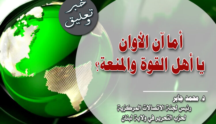 لذلك نقولها بثقة كبيرة وإيمان قوي إنه قد آن الأوان لأهل القوة والمنعة في جيــ..ـــوش المسلمين التي ما زالت تحرس العروش أن تتحرك لتنظيف الساحة أمام القيادة السياسية المخلصة الواعية للقيام بواجبها برعاية شؤون الأمة رعاية حقيقية قبل أن يدب اليأس فيها من جديد لا سمح الله.