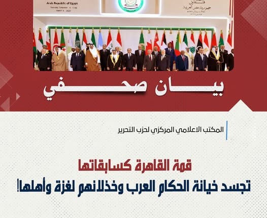 قمة القاهرة كسابقاتها تجسد خيانة الحكام العرب وخذلانهم لغزة وأهلها!