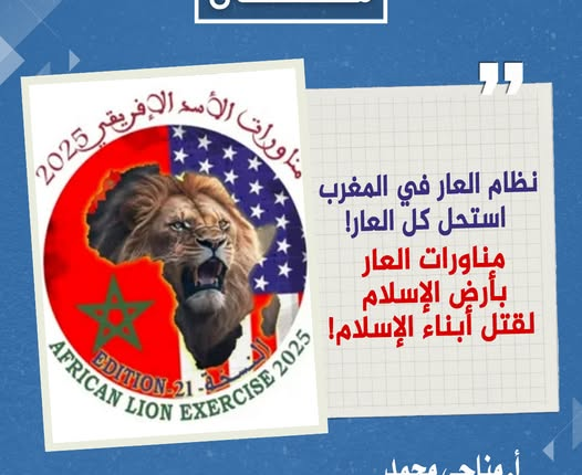 هو زمن العار زمن خونة الدار، أنظمة ضاربة في الخيانة موغلة في العمالة، ويكأن خيانتها وعارها وفسادها وإفلاسها وضلالها وبغيها ألقاب لملوكها وأمرائها ورؤسائها ومشايخها، أضحت معهم الخيانة سياسة ومنهجا. وفي المغرب نظام سليل من عرق الخيانة يتفانى ويتباهى في خدمة الاستعمار وخيانة الإسلام العظيم وأمته، وهو مصر على مناقضة أهل المغرب المسلمين المهمومين والمحزونين بإبادة ومحرقة أبنائهم ونسائهم وشيوخهم وإخوانهم بغزة الذبيحة، وفي تواطؤه مع يهود اجتهد نظام الضرار بالمغرب في اعتناق الخيانة ديناً، وانغمس كليا في مستنقع الغرب وانخرط في حربه الصليبية ضد الإسلام العظيم وأمته وصيره الغرب مدرسة في ذلك، وها هو في خزي خيانته ينخرط في حرب الصهاينة وإبادتهم لأهل غزة وفلسطين. ولقد صير هذا النظام الآثم الفاجر أرض الإسلام بالمغرب الأرض التي انطلق منها الفتح الإسلامي لأوروبا (فتح الأندلس)، ساحة لمناورات جيوش الغرب الكافر وميدان تدريب لعساكره واختبار لأسلحته، لتمكينه من خوض الحروب الصليبية الصهيونية الفعلية ضد المسلمين في مشارق الأرض ومغاربها!