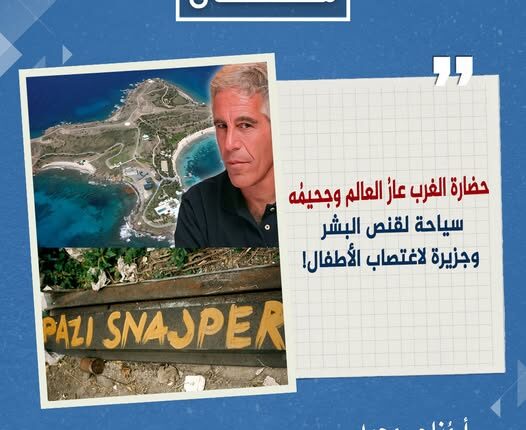 فمن جحيم جزيرة الرأسمالي جيفري إبستين المخصصة للعبودية الجنسية واغتصاب الأطفال، لإشباع شذوذ ضباع ملاعين وحوش الغرب من الأثرياء والساسة، من رؤساء أمريكا دولة العار الأولى إلى أمير أم العار بريطانيا أندرو، وما زالت تتكشف وجوه هذا العار وأسماء أئمة الكفر والعار، فقد نشر المشرّعون الأمريكيون أكثر من 20 ألف صفحة من وثائق ممول هذا العار جيفري إبستين المدان بارتكاب جرائم جنسية، وتذكر بعض الوثائق أندرو وندسور شقيق ملك بريطانيا تشارلز؛ والرئيس الأمريكي دونالد ترامب؛ ومستشاره السابق ستيف بانون؛ ولاري سامرز وزير الخزانة السابق، ورئيسه الديمقراطي بيل كلينتون، وظهر كذلك اسم توم باراك مبعوث ترامب لسوريا، عطفا على رأسماليي البنوك الكبرى، وهذا مجرد رأس جبل العار الذي كشفته مئات الوثائق فقط وما هو عائم في القاع خيوطه ممتدة إلى كل وحوش الغرب.
