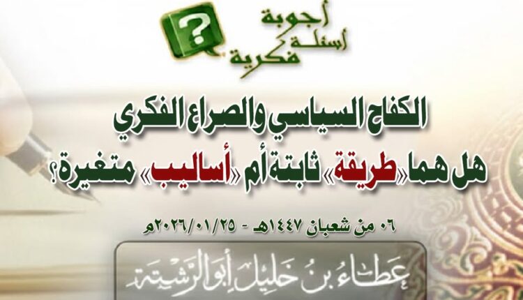 السؤال: السلام عليكم ورحمه الله وبركاته…. اميرنا وشيخنا حفظكم الله وايدكم ونصركم …. الكفاح السياسي هل هو من احكام الطريقة ام اسلوب من الاساليب، حفظكم الله وادام عزكم ووفقكم ونفع بكم وفتح عليكم ورفع مقامكم
